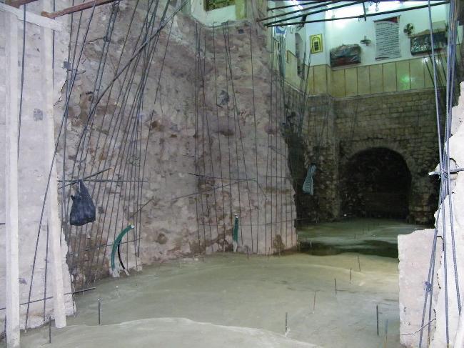 وكذلك الأوتاد الداخلية ضمن صحن الجامع وضمن الكتلة الشرقية لإعادة بناء الكتلة كما كانت سابقا وحماية أروقة الجامع من الإنهيار