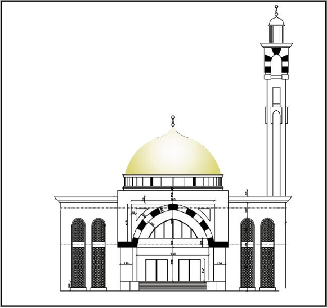 (560) مترمربع , وفيه سدة بمساحة (300) متر مربع ومعهد شرعي في القبو بمساحة (800)