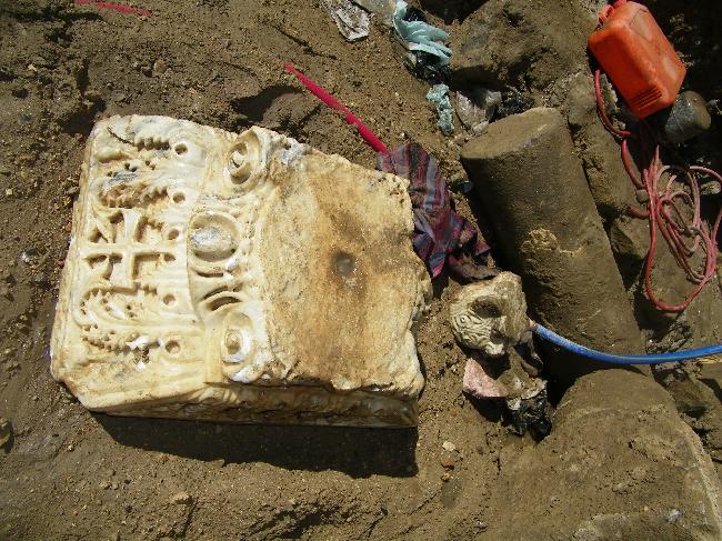 وكذلك الأوتاد الداخلية ضمن صحن الجامع وضمن الكتلة الشرقية لإعادة بناء الكتلة كما كانت سابقا وحماية أروقة الجامع من الإنهيار